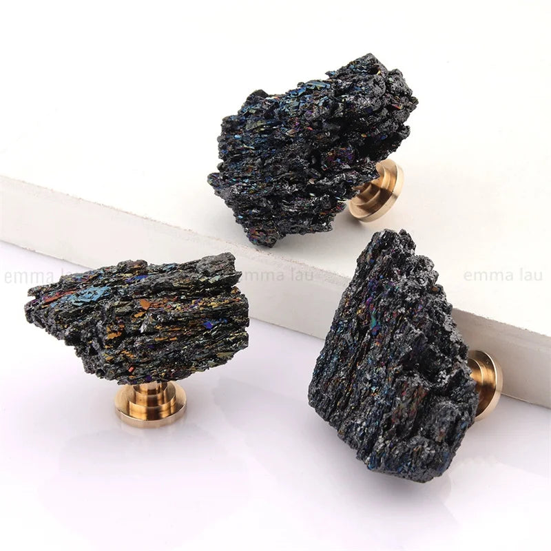 Beleza Natural e Exclusiva: Cada puxador possui textura e coloração únicas, revelando o encanto autêntico da pedra fluorita.