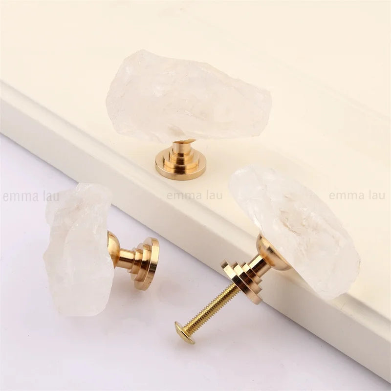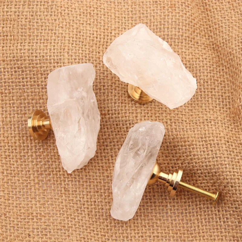 O acabamento em latão de alta qualidade, com tratamento antioxidante e esmalte protetor, garante durabilidade e brilho duradouro, resistindo ao tempo e ao uso diário. Ideal para quem deseja valorizar móveis com pedras naturais, agregando sofisticação e um toque artístico a gavetas, armários e portas.